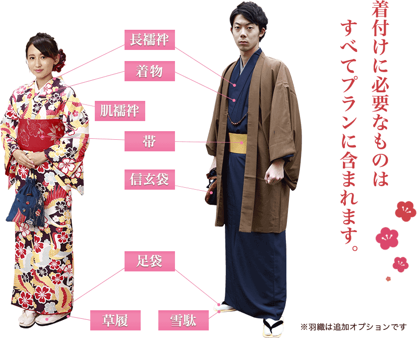 当店人気No1! 選ぶ楽しさ、着る楽しさ。 豊富な柄・色からお好きな着物をセレクトできる人気No.1のベーシックプラン。写真映えも◎ 「トレンド柄や季節限定デザインも多数ご用意」 「着物・帯・小物まで全て自分で選べる」 「デート・女子旅・記念撮影にもおすすめ」 ※最終受付15:30 / 返却時間16:30まで ※17時を過ぎると30分毎に1100円